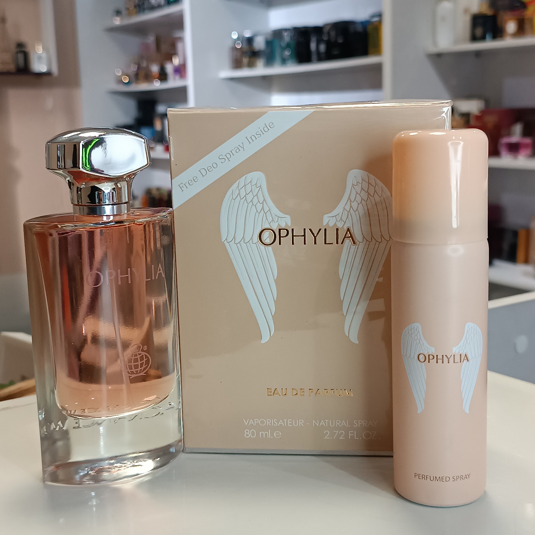 عطر ادکلن افیلیا Ophylia فراگرنس ورد عطری زنانه و اسپرت با رایحه ای گرم و شیرین است و مشابه ادکلن معروف پاکورابان المپیا می باشد. عطر ادکلن زنانه افیلیا از روحیه ورزشی و رقابت و پیروزی الهام گرفته و ایده طراحیش بر اساس الهه مدرن یونان و تداعی کننده قدرت و پویایی است. عطری منحصر به فرد و تکرار نشدنی که با ماندگاری و پخش بوی بالای که دارد از ارزش خرید بالایی برخوردار می باشد. شما عزیزان می توانید تمامی عطر ادکلن های فراگرنس ورد را از فروشگاه  دریسو  مرکز پخش عطر ادکلن های شرکت فراگرنس ورد با قیمت عمده و ارزان تهیه کنید.